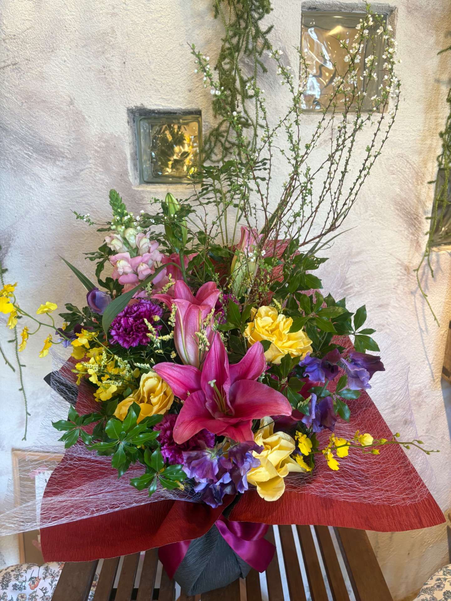 先日のお届け・入荷のお知らせ 2026/01/31 『先日のお届け&入荷のお知らせ』 ・ 富岡商工会議所青年部さまの 「定期総会・新年会」 市内中学校へ 「立志式」の 演台花をお作りさせていただきました! ・ ・ また、今流行り?のモールフラワー入荷しております! お立ち寄りください♪ イベントフラワー ギフトフラワー