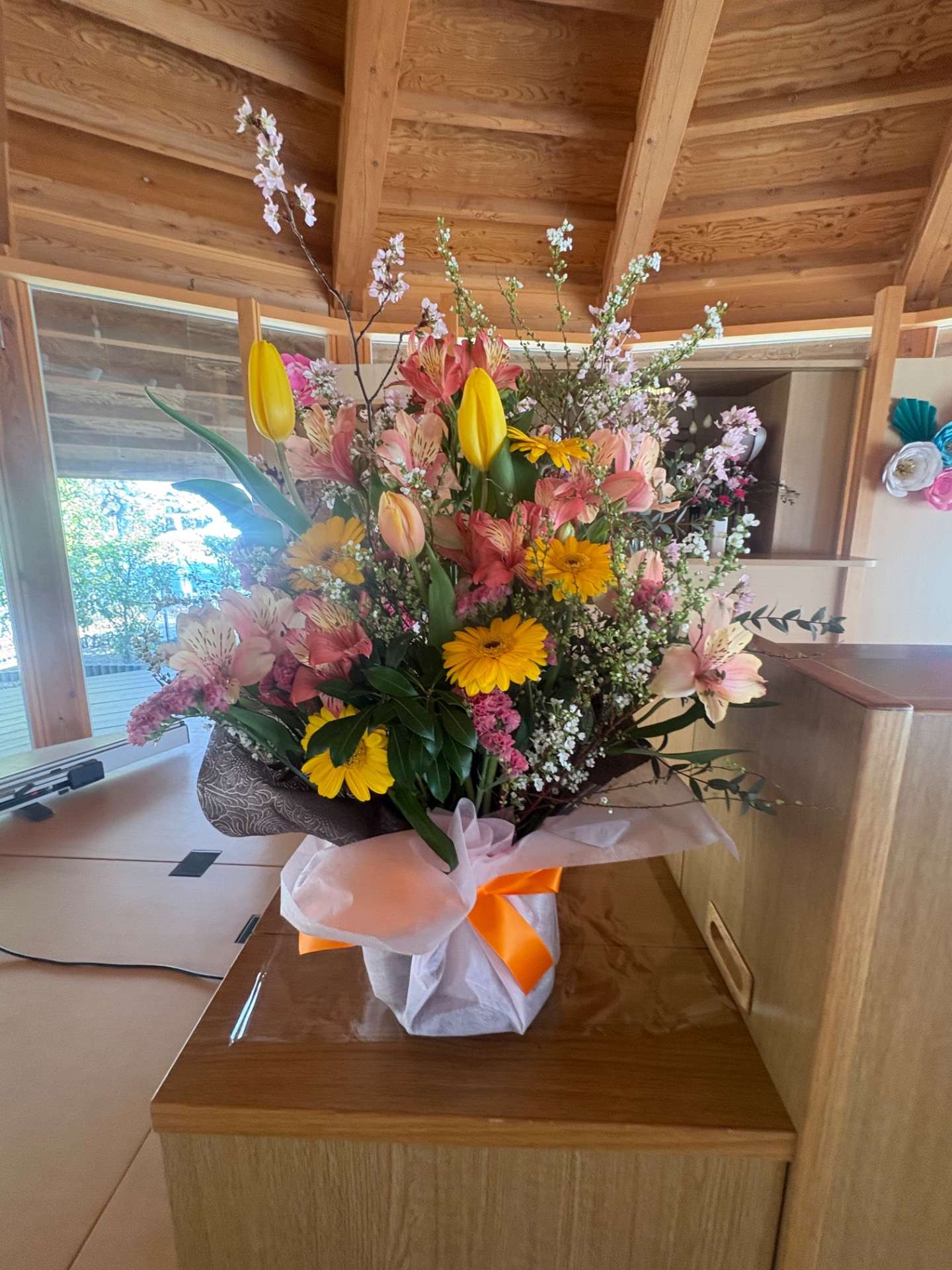 先日のお届け 2026/04/07 先日のお届け… ・ 入学や入社式の演台のお花をお作りさせていただきました! ・ ・ 本日は市内小学校、入学式ですね。 ご入学おめでとうございます♪ #群馬県#富岡#入学式#花#おめでとう イベントフラワー
